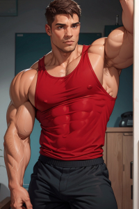 A powerful bodybuilder sitting with intense focus, showcasing muscular definition and strength.